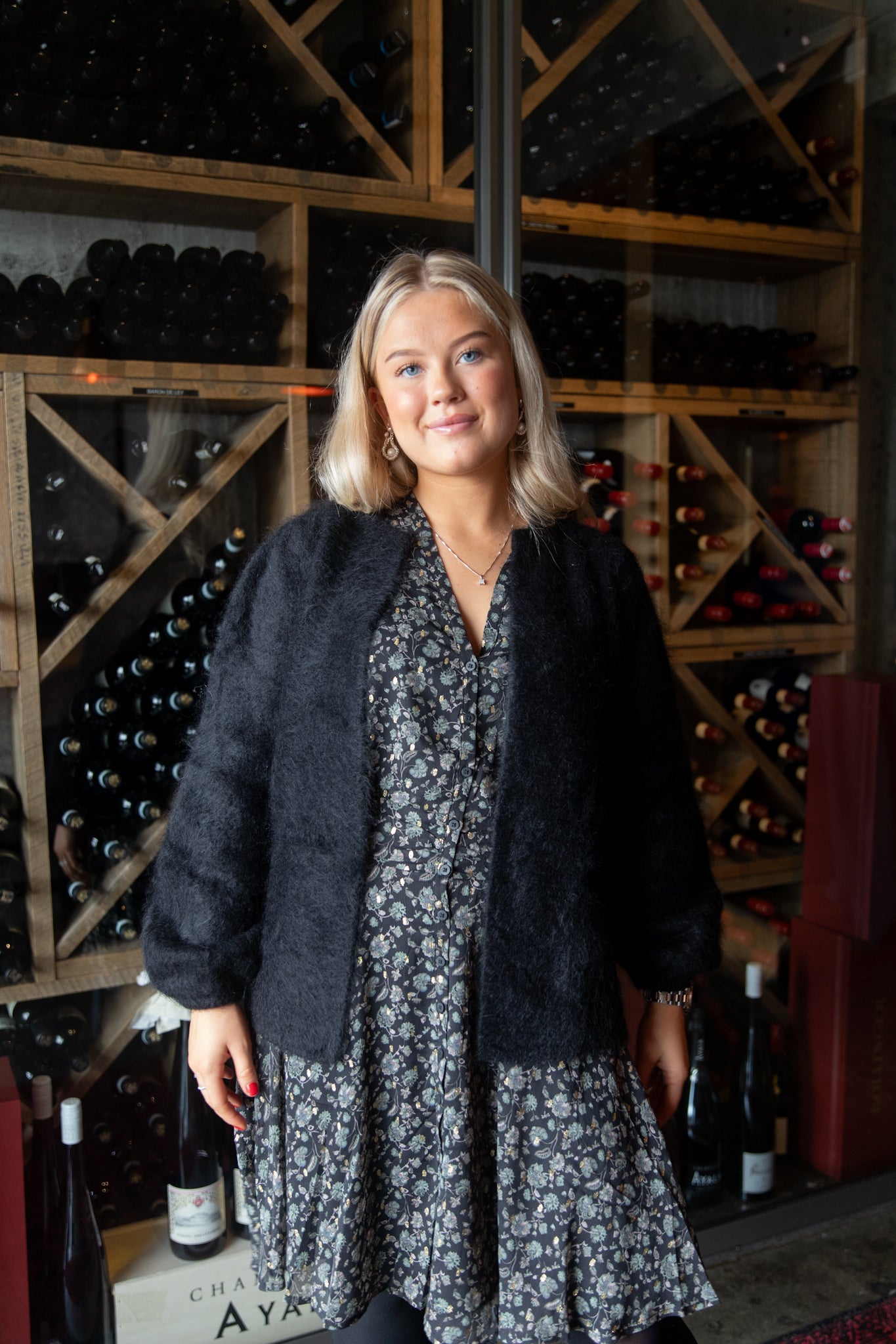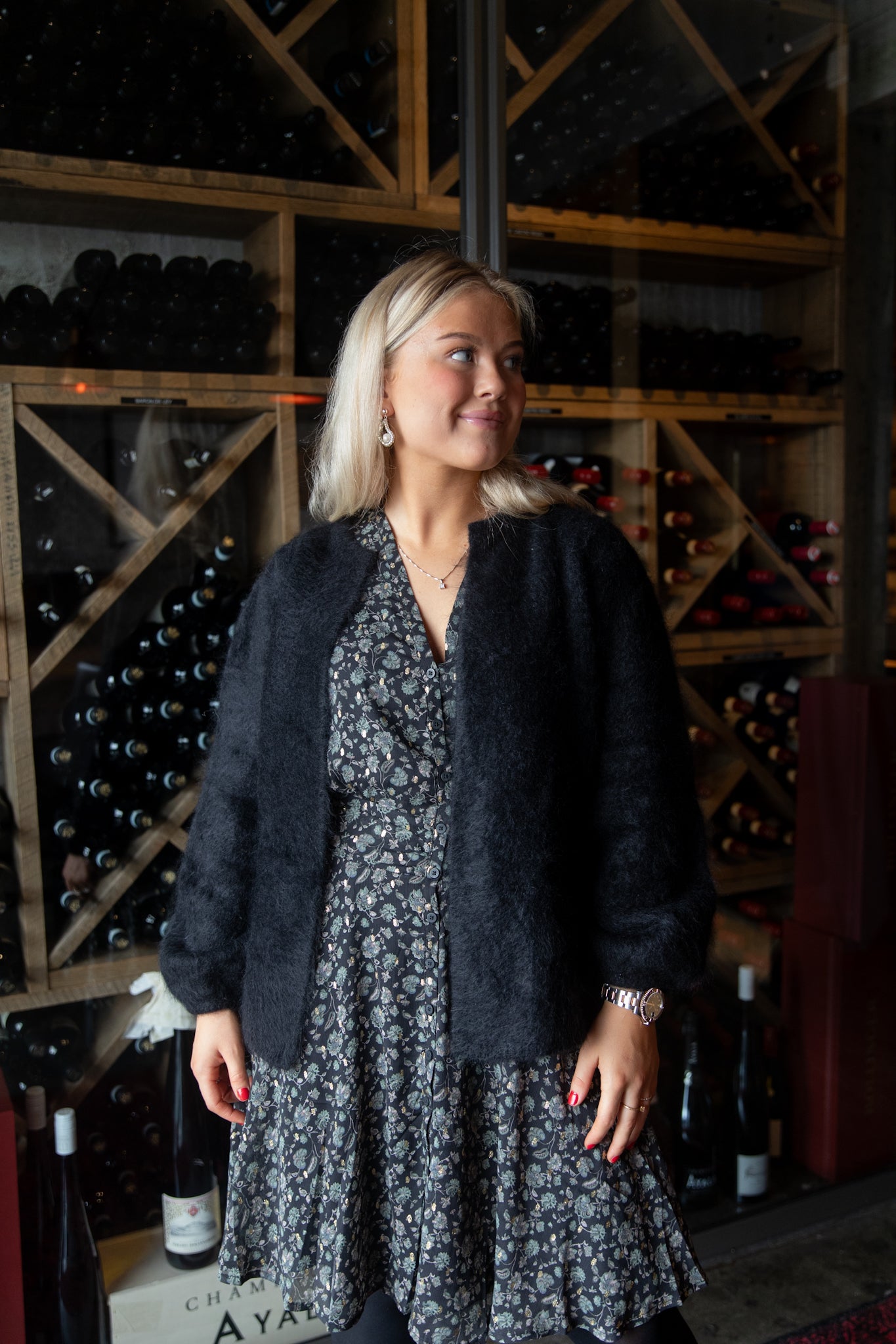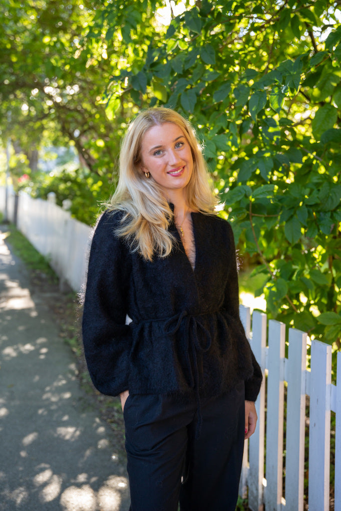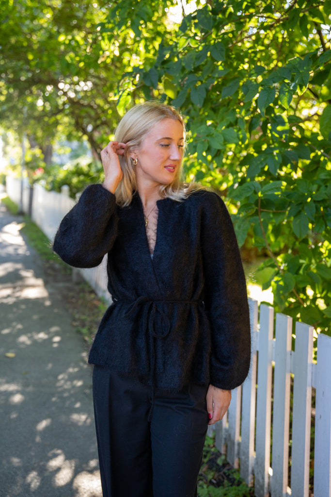 Feminin cardigan i deilig mohairblanding. Superfin over kjole, skjørt og til bukse.