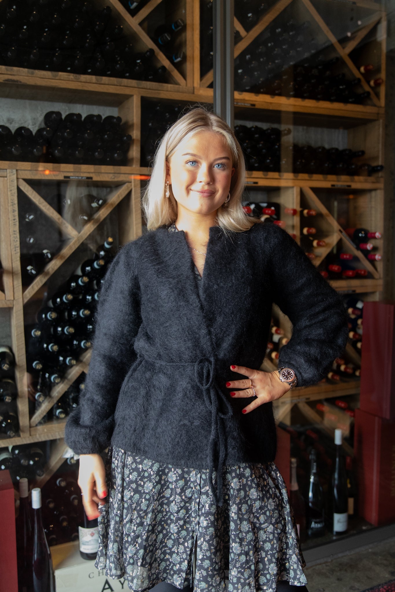 Superlekker chunky cardigan fra norske Ella&il. Modellen er smal med hoftelenge og avtagbart bånd i midjen. Rund hals med v- utringning og omslagseffekt. Lange delikate ballongermer. Delikat børstet kvalitet i klassisk sort farge.