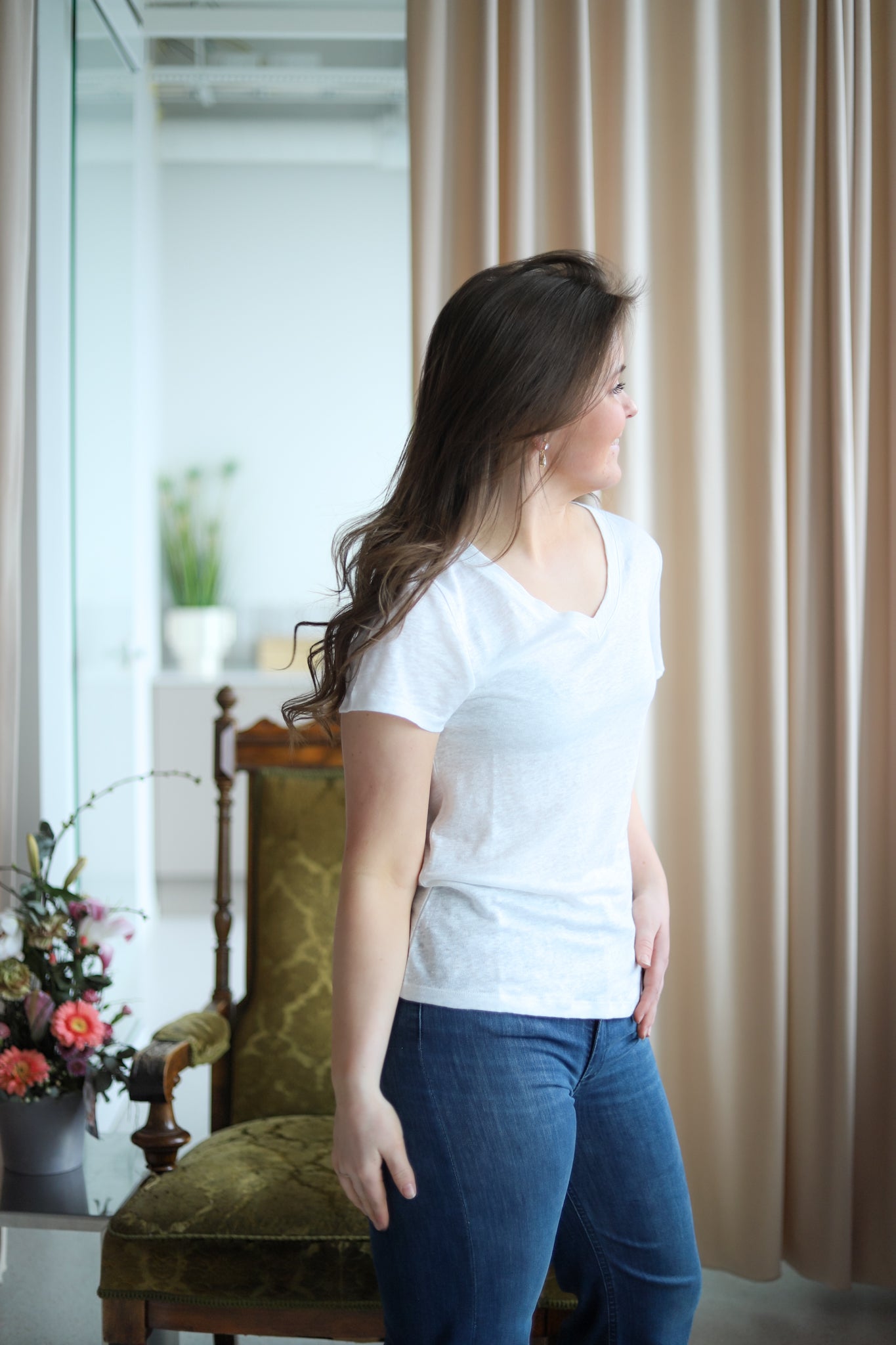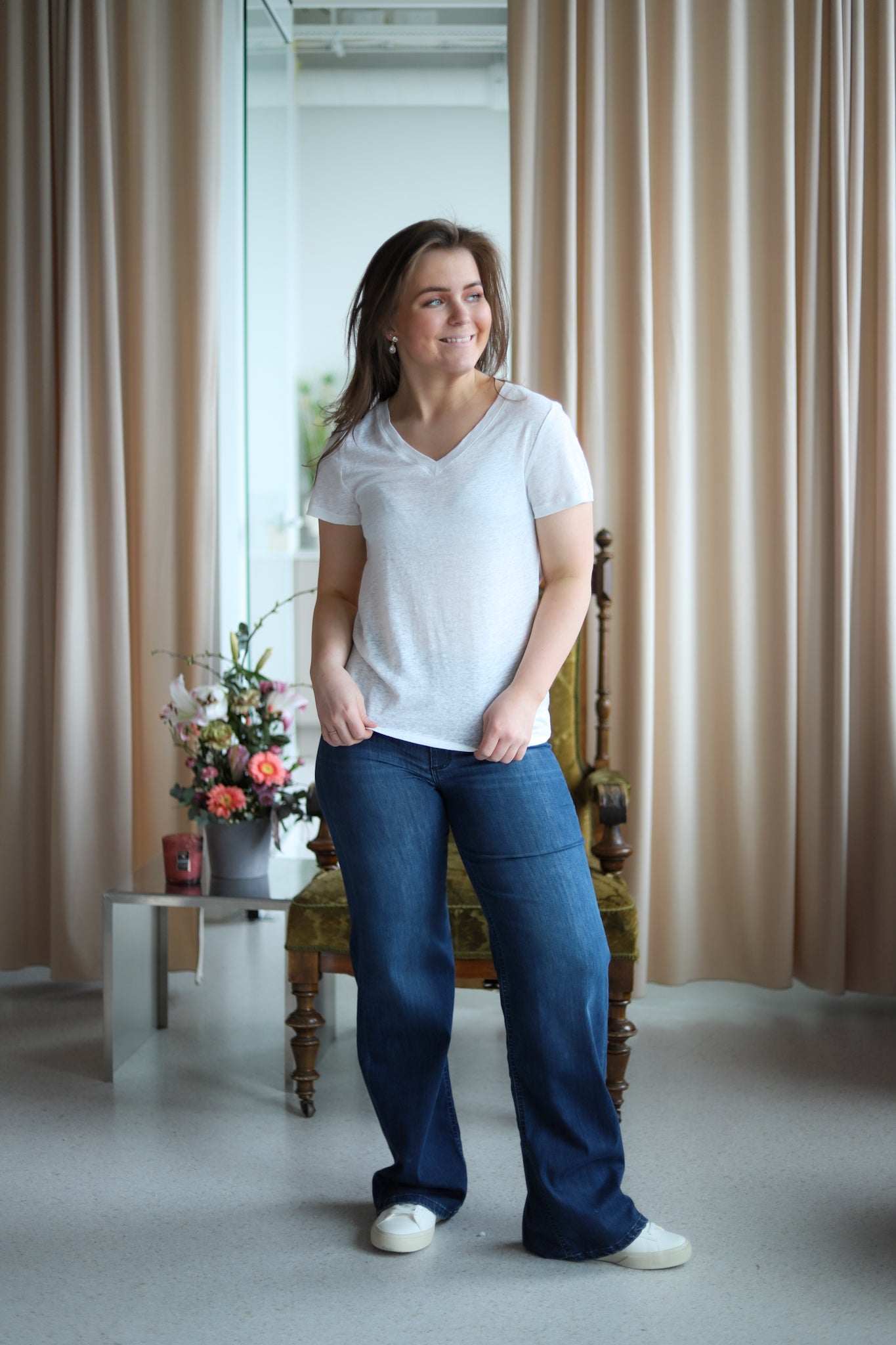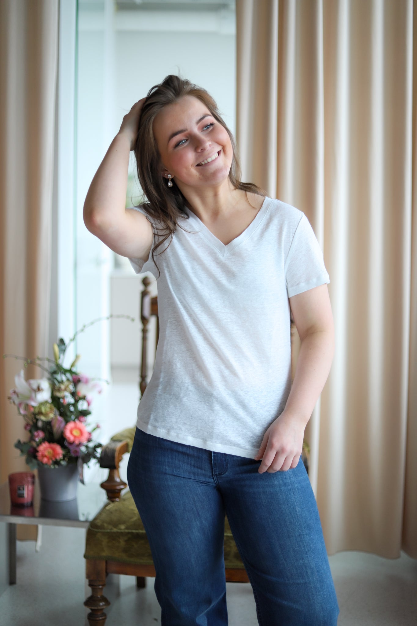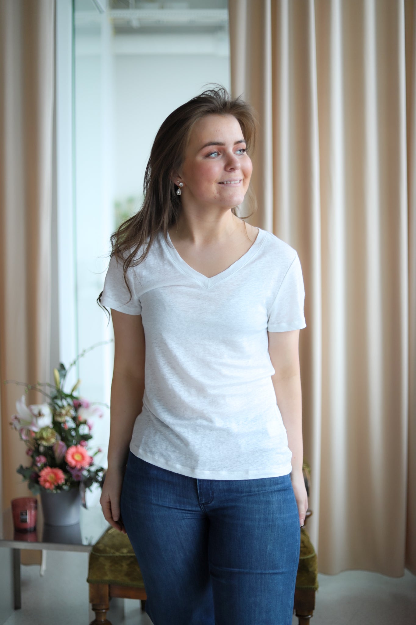 Deilig t-skjorte i 100% lin fra Ella&il. Dette er den perfekte basic t-skjorten som har blitt en favoritt for mange! Med sin rette form og v-hals. Et basisplagg som alle kvinner bør ha i garderoben! Her i klassisk hvit.